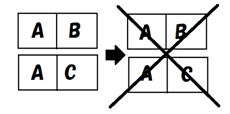 A,B,C 3名の名前で応募していますが、Aさんが重複しているためどちらも無効となります。