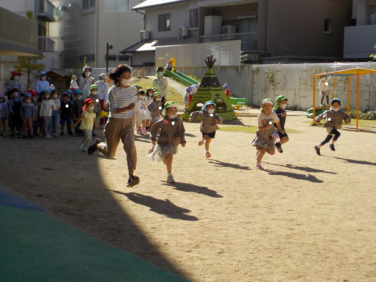 残念ながら、また負けてしましました(^_^;)でも、とっても迫力のある先生達の真剣に勝負する姿、負けてもくじけずに再度チャレンジする姿はきっと子ども達のやる気に繋がったはず!その後も、かけっこは盛り上がりました♪