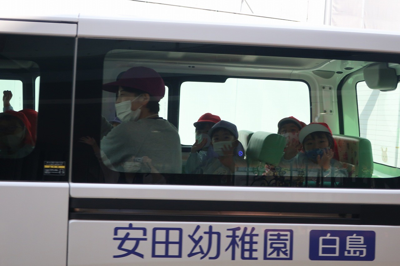 22日(金)は年中組のスナップ豆の収穫の日でした。みんなでバスに乗ってお出かけをすることがとても楽しみで仕方がなかった年中さん♪笑顔いっぱい、バスに乗り込みます!