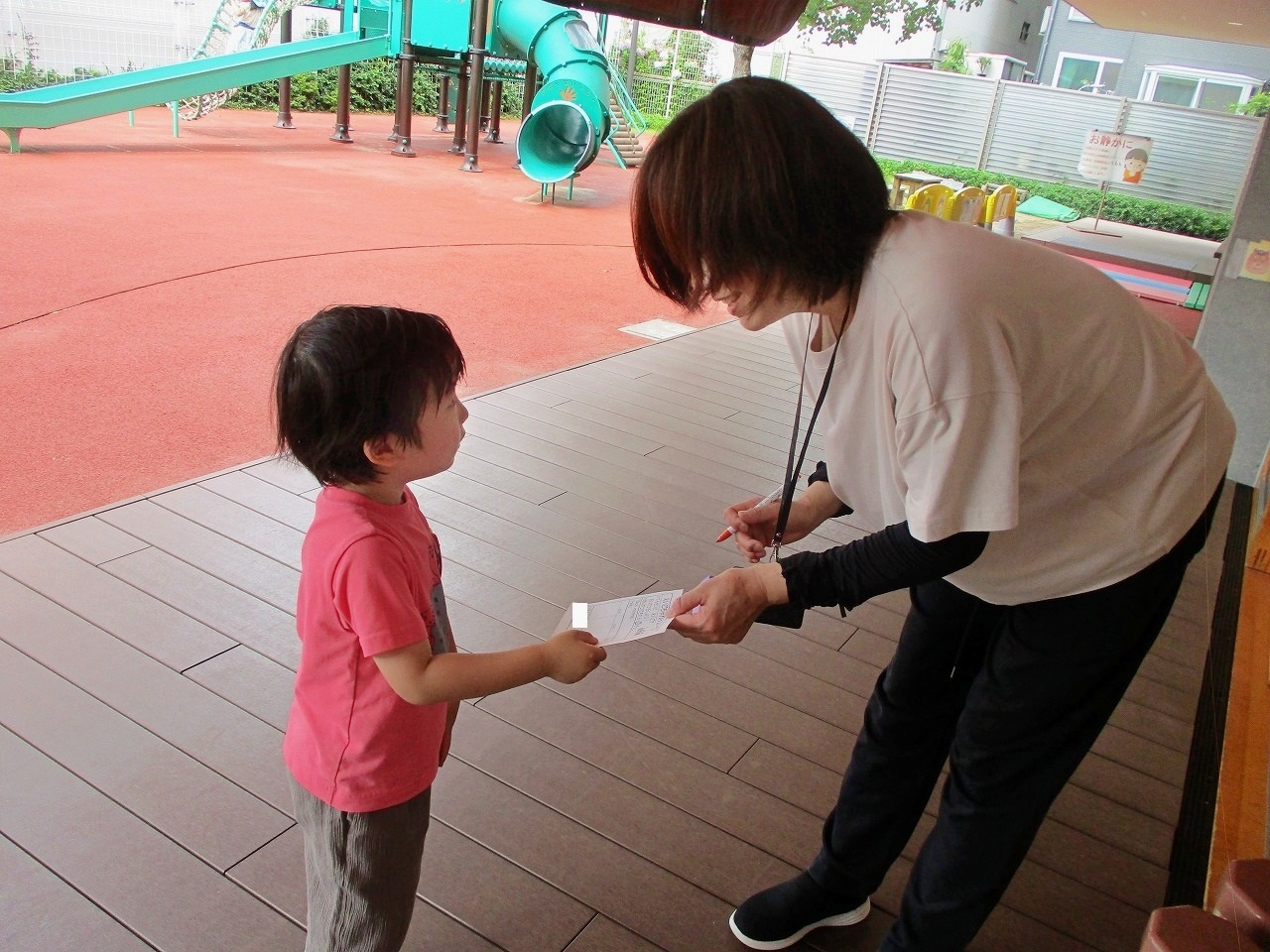 カードにスタンプがいっぱいになると、「こんなにスタンプもらったよ!」「上手に英語で挨拶できた!」と嬉しそうに見せてくれました(*^_^*)