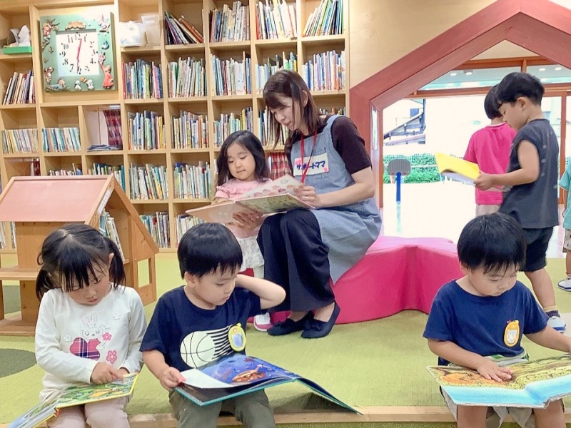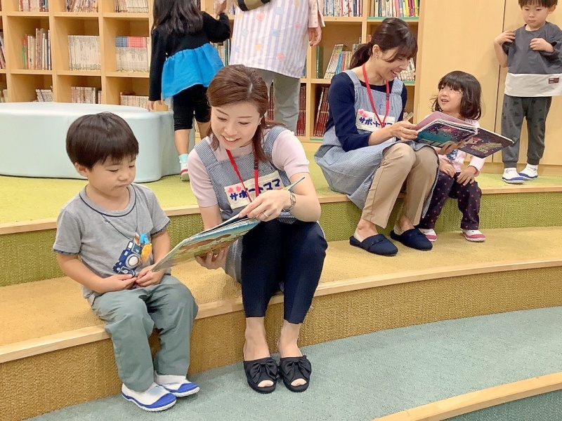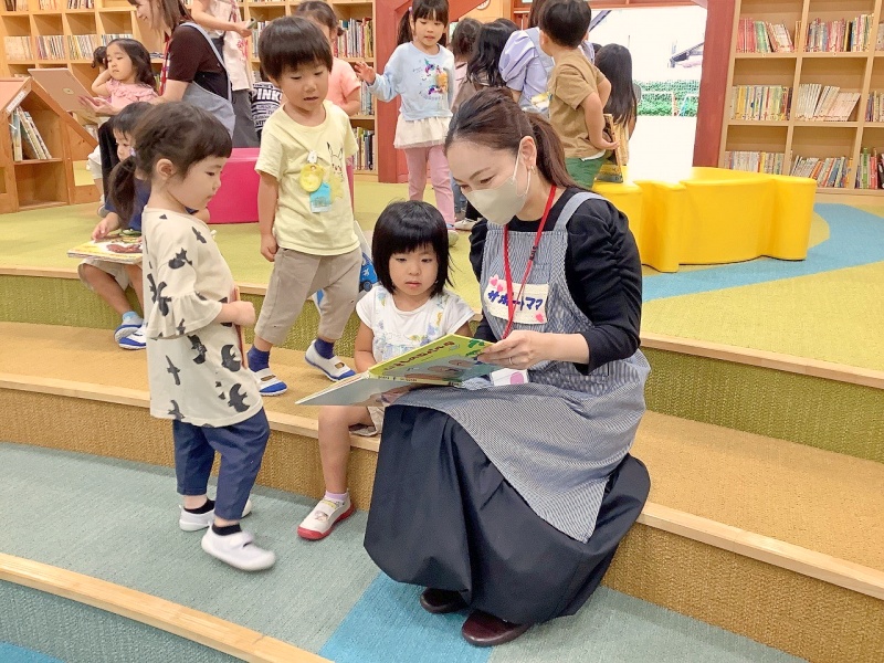 絵本の貸出日に、図書室で絵本を選ぶ園児の相談にのっていただいたり、2~5人くらいの小グループでの読み聞かせをしていただいたりしています♥本棚の整理整頓もしてくださっているのでとても助かっています♪