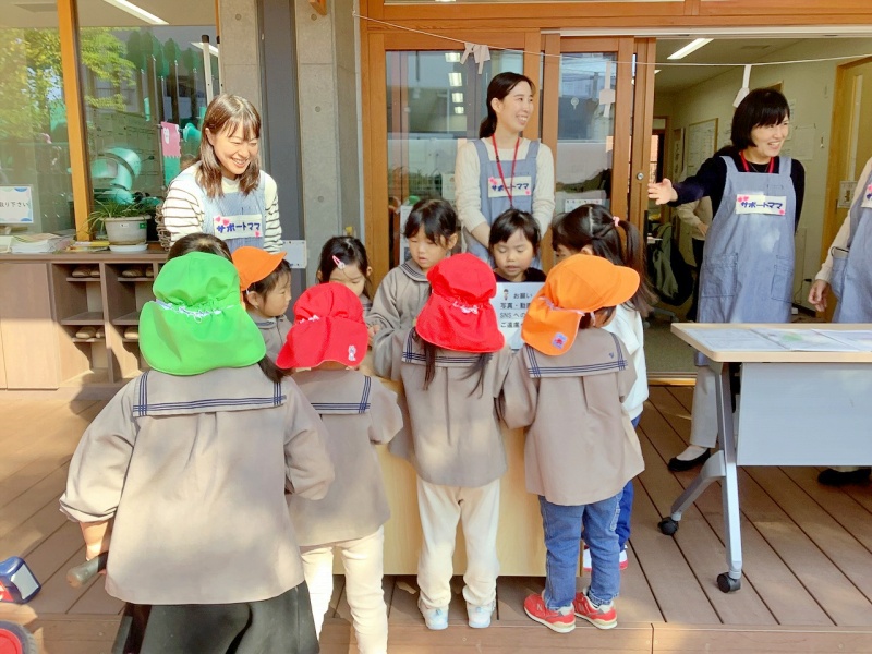 まずは、保護者サポートママと園児たちとで、来園された参加者親子をお出迎え💗