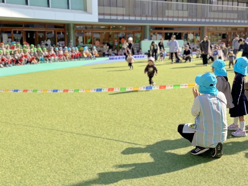 「よーい、どん!」の合図で、元気いっぱいに走る我が子の姿に、未就園児の保護者の皆さんも笑顔で応援していました😄