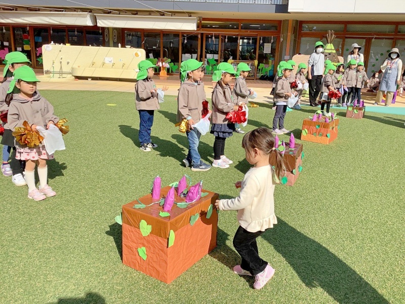 土(段ボール製)の中からお芋を引っ張って抜くと、「やったー!」と歓声があがり、園庭は笑顔でいっぱいになりました(^^♪