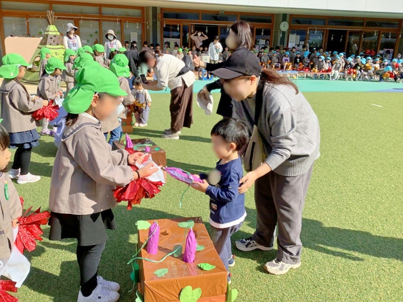 年長児は、プログラムの紹介をしてくれたり、競技の進行を手伝ってくれたりする中で、小さいお友だちを優しくサポートする姿がとても頼もしかったです。