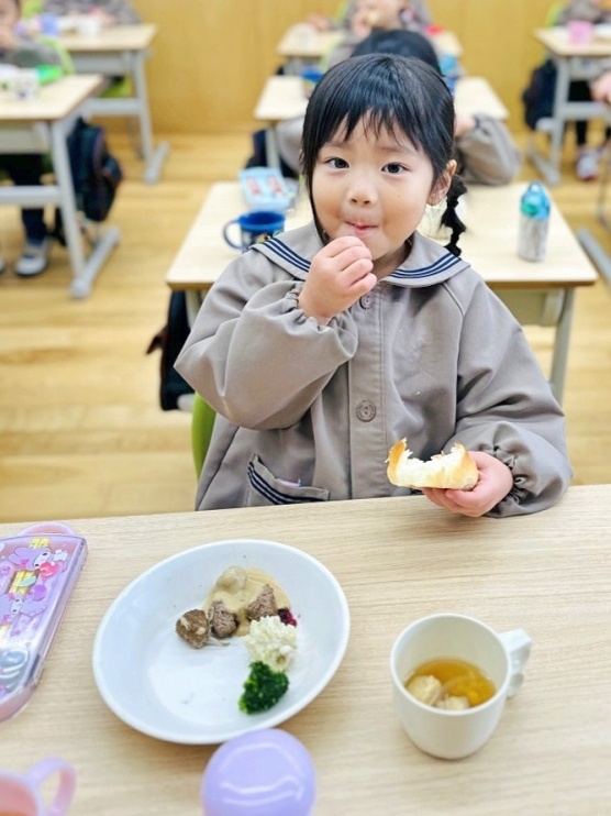 「幼稚園でこんな国際的な料理が食べられるなんて素敵だね!」「おいしい!」「おうちでも食べたい!」と会話を楽しみながら食べました。食を通して、世界の文化に触れる楽しい時間になりました💕