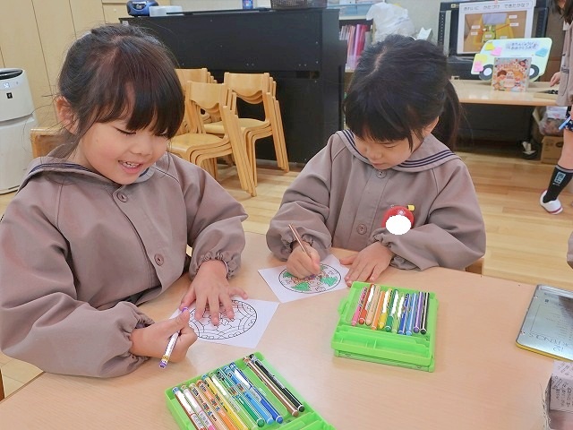手紙と一緒に塗り絵のプレゼントも入っており、嬉しそうに塗っていた子ども達♪