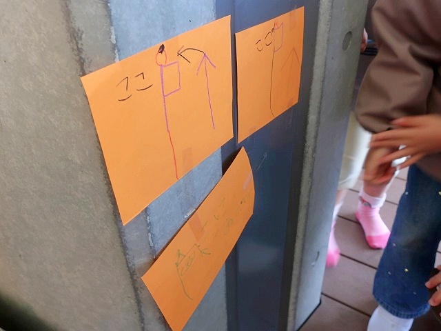 園旗を掲げる旗ポールのてっぺんに引っかかっているの見つけると、「あった!あんなに高いところにある!」「ソリに乗って帰るときに引っかかったんだ!」「どうやって取る?はしごかな・・・サルを呼ぶとか?!」と、可愛いつぶやきがあちこちからたくさん聞かれました💓