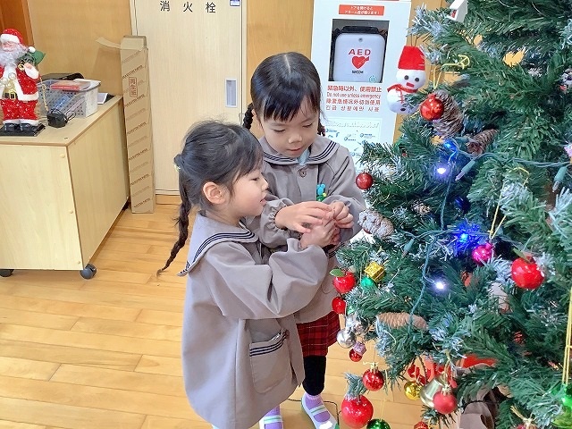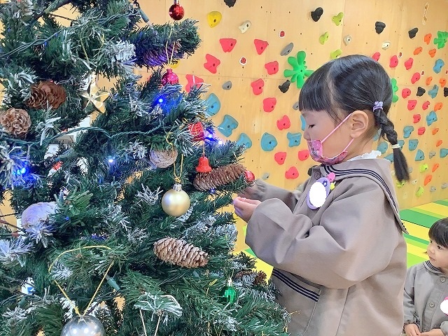 クリスマスツリーに飾りつけをしたり、アドベントカレンダーでクリスマス会までの日数をカウントダウンしたりと、クリスマスに向けて盛り上がっています(*^_^*)