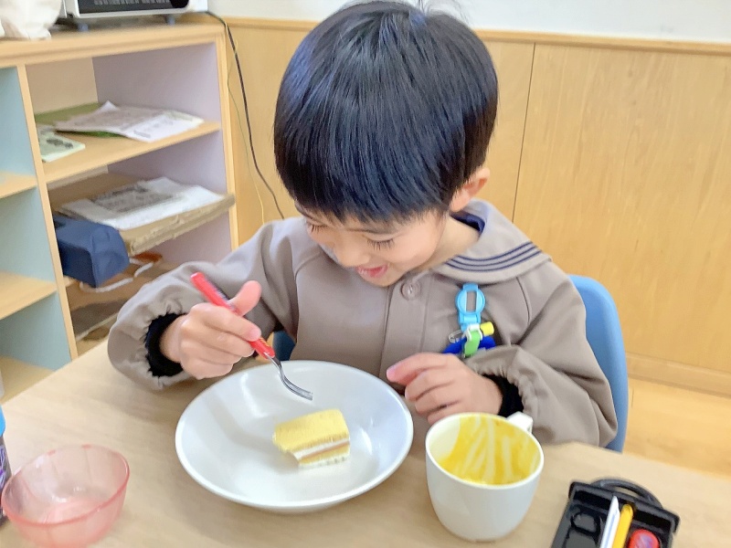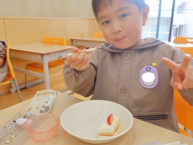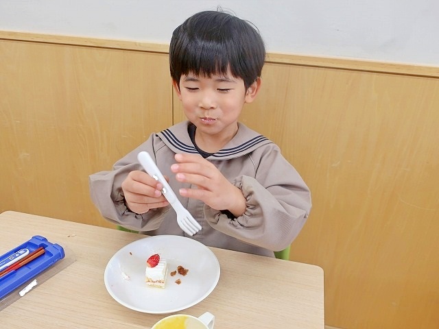 デザートにはクリスマスケーキ🍰もあり、おいしそうにほおばっていました(*^_^*)