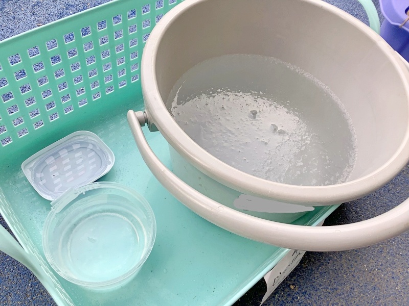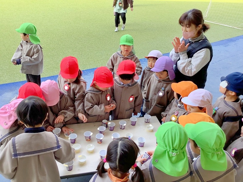 「明日(1月22日)はマイナス1℃になるくらい寒くなるんだって!」と、天気予報を見たりおうちの人に話を聞いたりしていた子どもたちが話をしていました。そんな会話や去年の経験から「氷を作る実験をしてみよう!」ということになり、帰る前にカップやバケツに水を入れて、氷ができるのを楽しみにして帰っていきました。