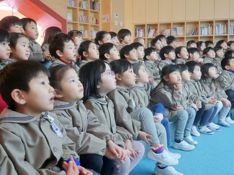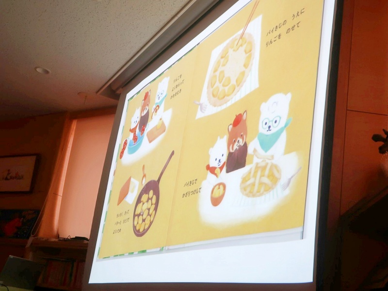 今回はなんと!絵本『りんごばたけのアップルパイ』に登場する「アップルパイ」が登場する予定です!🍎その絵本を園長先生が読み聞かせてくださいました。