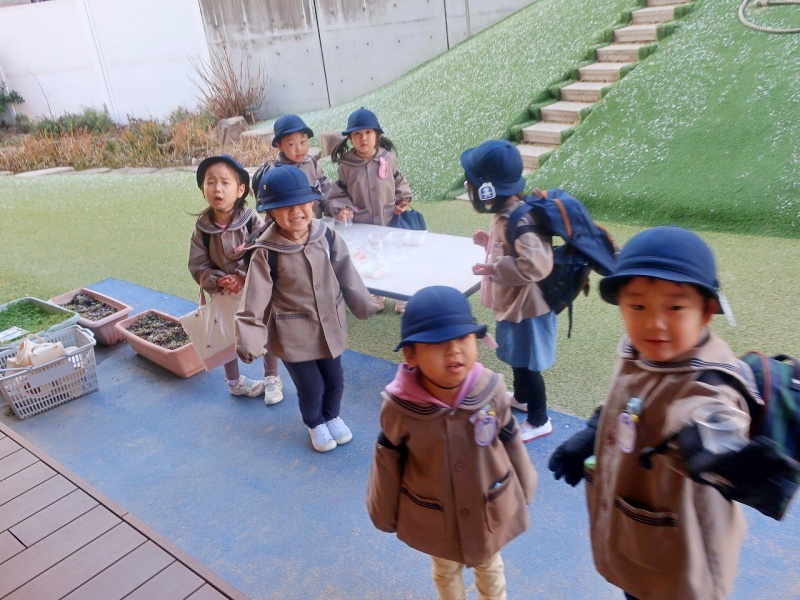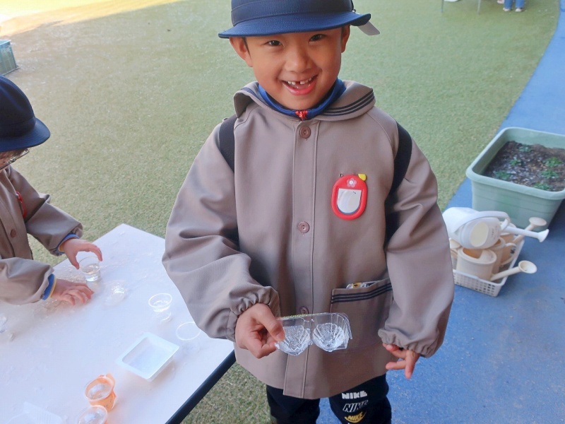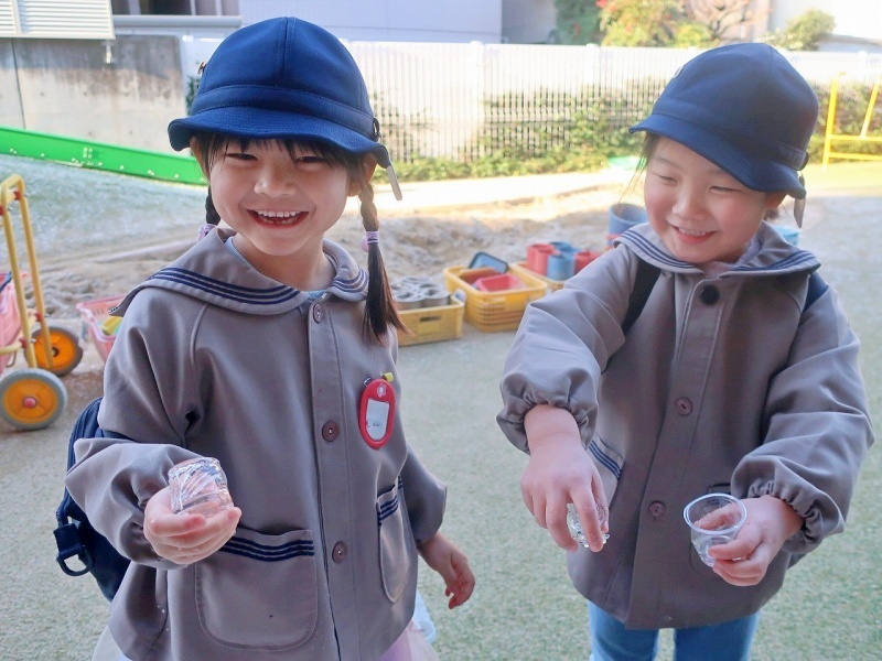 大寒波のおかげで、自然の不思議に触れることができた一日となりました。 寒さの中にも、子どもたちの笑顔があたたかく広がっていましたよ💓また、氷ができるかな?と、カップに水を入れて帰った年中組です♡