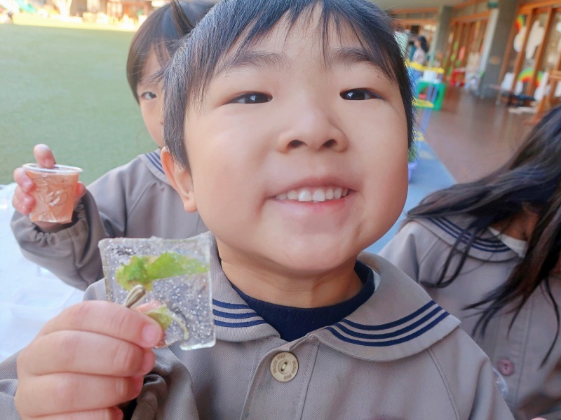 お昼になると、気温が少し上がって氷が少しずつ溶けていき・・・「あれ?なくなってる!」「とけちゃった〜!」と、またまた大騒ぎ。