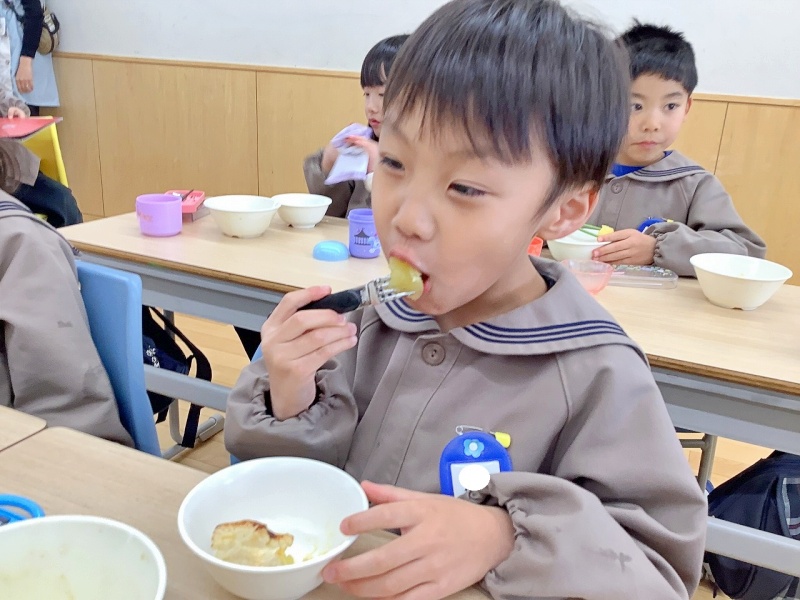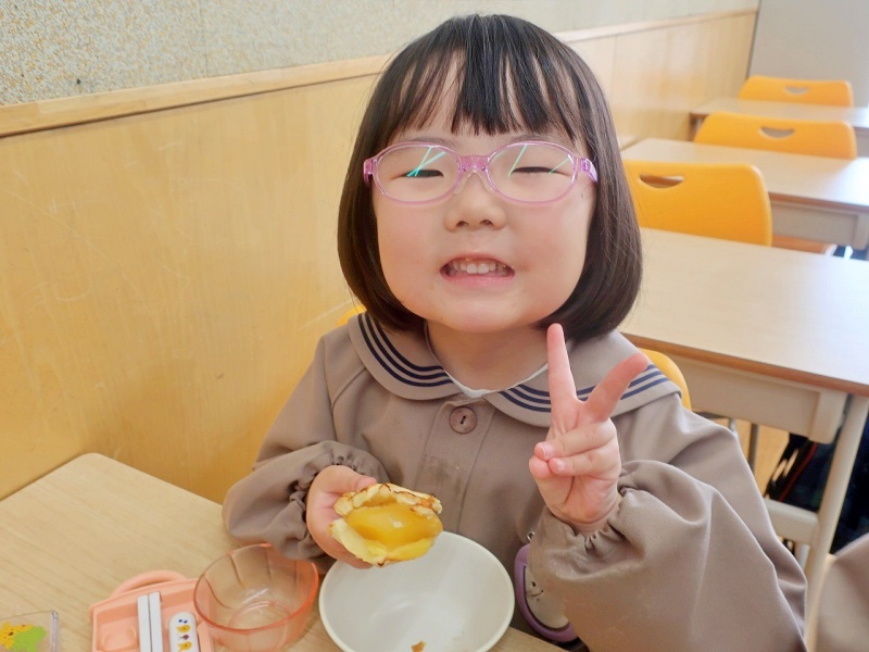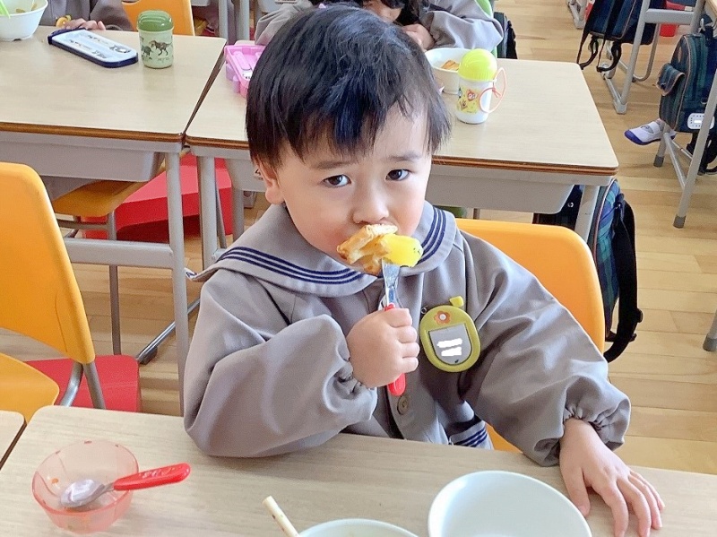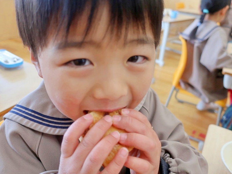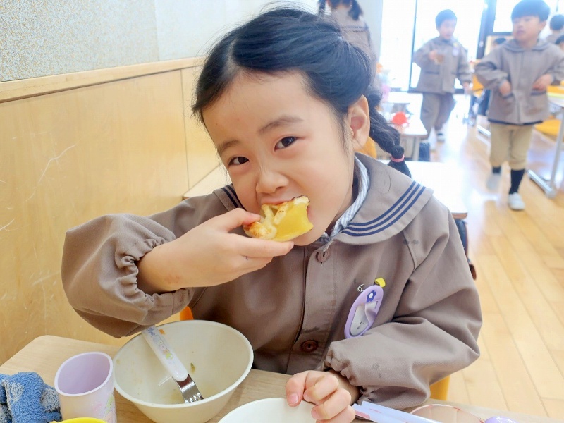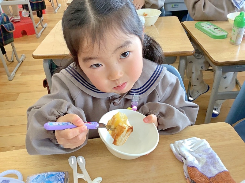 先日のブログ(1月22日)でお伝えした絵本「りんごばたけのアップルパイ」の「アップルパイ」がいよいよ給食に登場💗登園時から「今日は、アップルパイでしょ♪」と朝から嬉しそうな子どももいました🍎