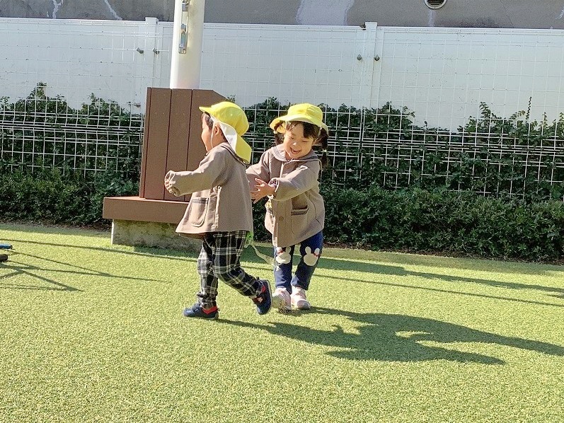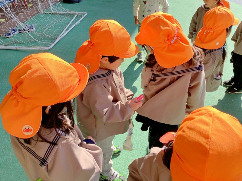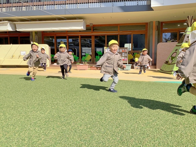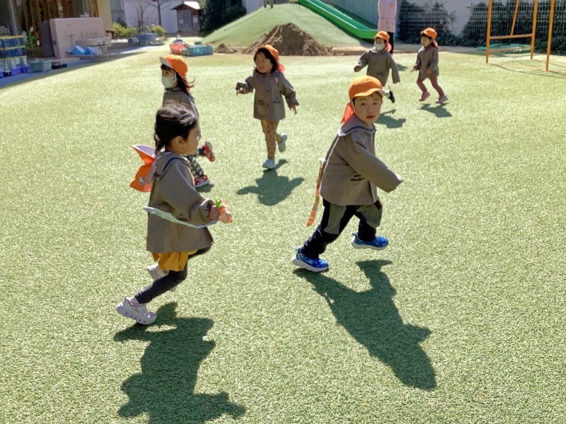 給食を食べ終わった後の好きな遊びの時間にも、「先生、しっぽ取り早くしよう!」と言う声が聞かれ、繰り返し何度も楽しんでいました(#^^#)