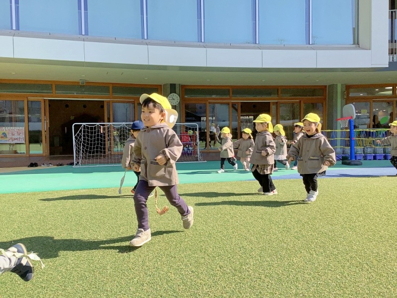 年少組は朝の一斉活動の時間に、「しっぽ取り」を楽しみました!