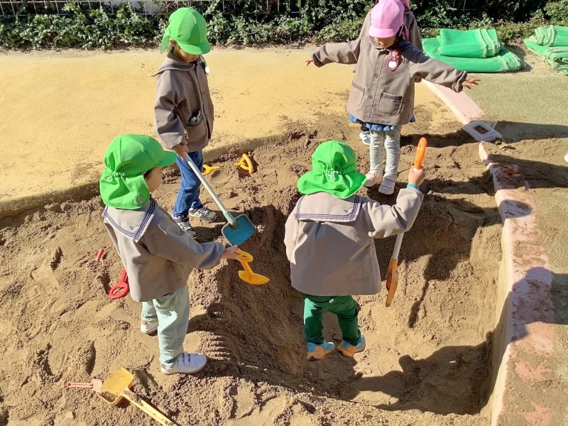 数日後、砂山の横には大きな穴が!穴の大きさに年少さんもビックリ!!