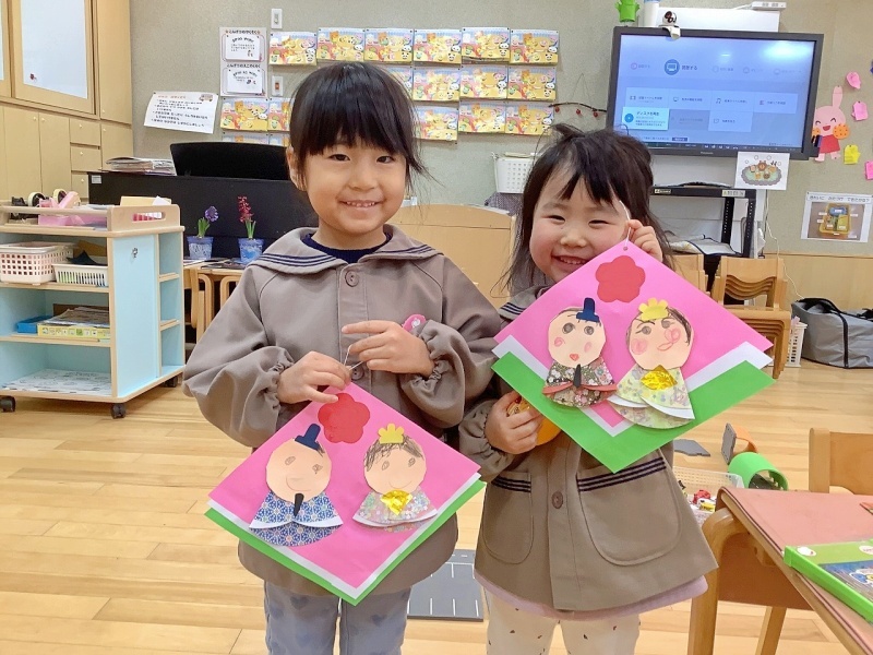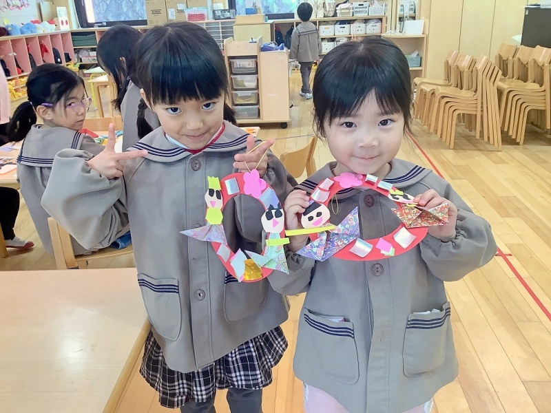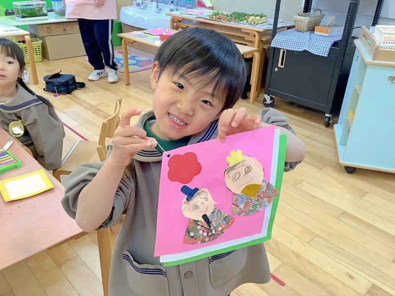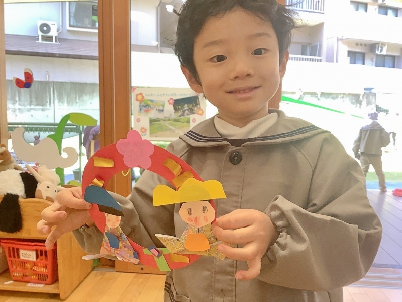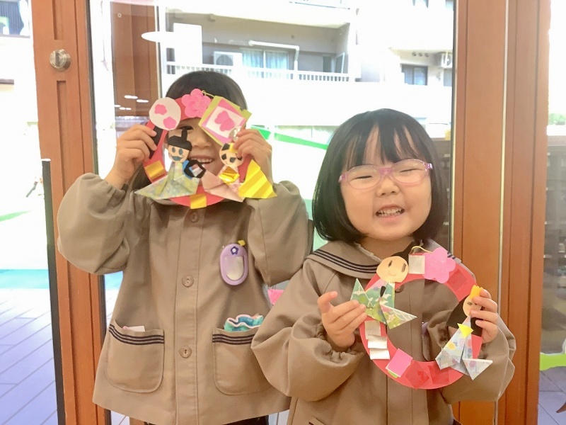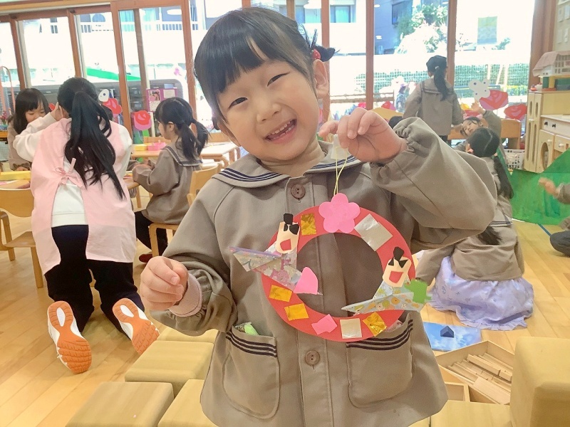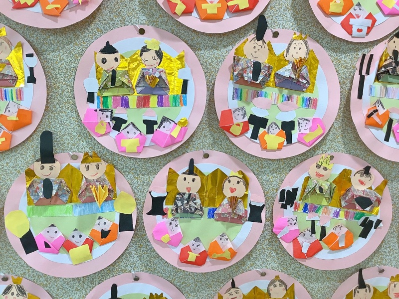もうすぐ雛祭り!と言うことで、園に七段飾りのひな人形を飾りました🎎子ども達も、自分だけの雛飾りを作っています!