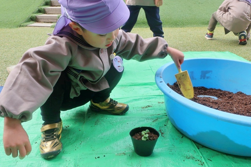 毎年、5月に広島市の平和公園・平和大通りを中心に開催される「フラワーフェスティバル」。子どもたちが花に触れ、花を育てる喜びや平和へのメッセージを共有する企画「ピースフラワープロジェクト花育」に年中組が参加します。小さな小さなビオラの苗を優しく植える子ども達♡育てたビオラは、フラワーフェスティバルで飾られます♡大切に育てようね🌸