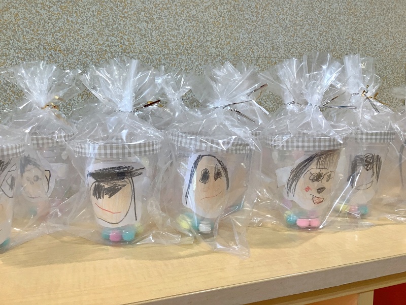 年少組は、ペアの年長さんの似顔絵入りのペン立てをつくりました!1年間たくさんお世話をしてくれたり、遊んでくれたりした年長さんのことを思いながら、作ることができました!喜んでもらえますように💛