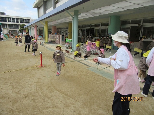 今日から3月まで、安田女子大学教育学部児童教育学科の2年生の学生が実習に来ています。今朝、園児を送って来られた保護者の方が、「お姉さま先生に遊んでもらうのを楽しみにしていたんですよ」とおっしゃっていました。子ども達は早速、お姉さま先生と一緒に元気に遊んでいました。若いパワーにみんなで期待しています♡