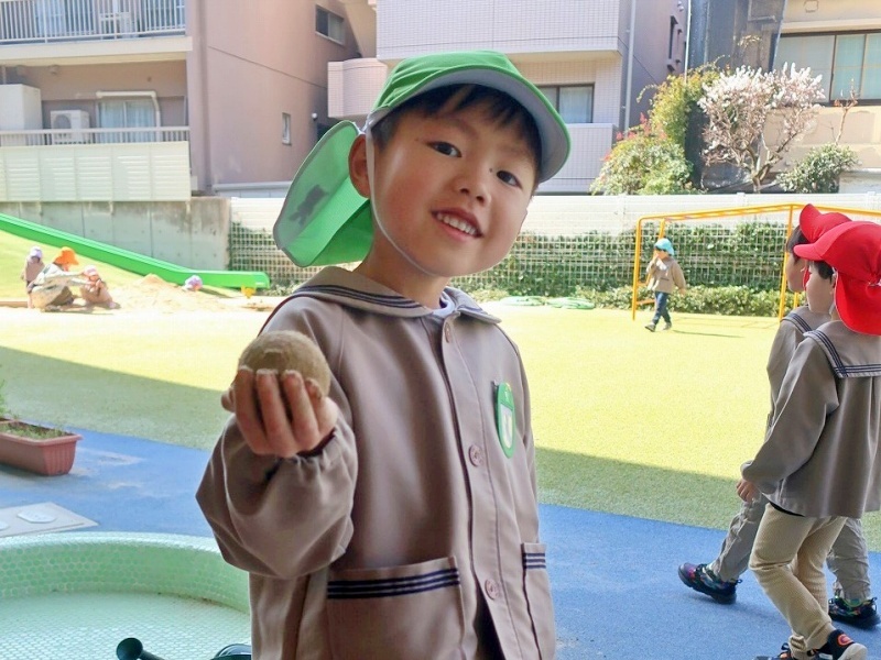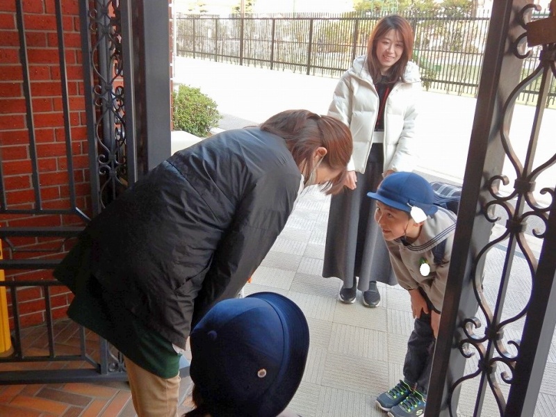 元気に登園し、園長先生との朝の挨拶からスタート。とても上手にご挨拶ができるようになった姿に成長を感じました。