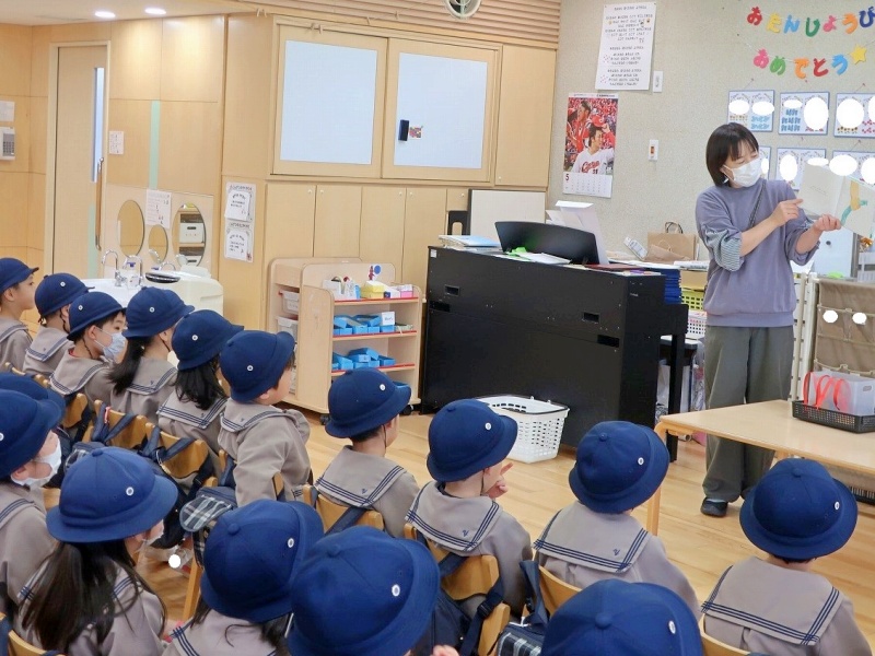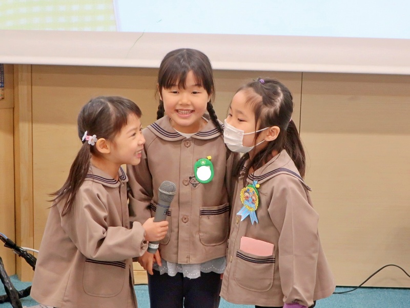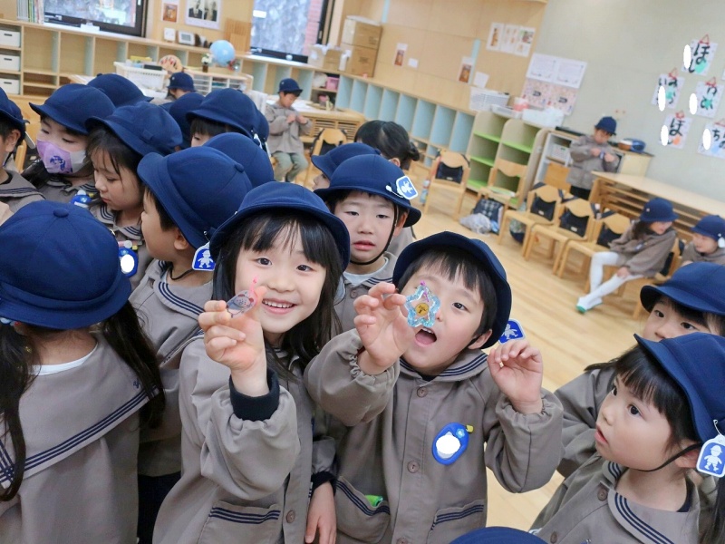 クラスでは、絵本の読み聞かせを見たり、園長先生手作りのバッジをもらったりし、最後の最後まで笑顔いっぱい!!