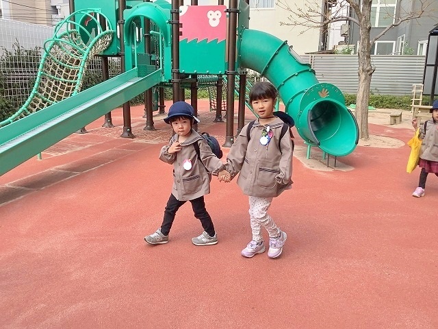 先週末に入園式を終え、今日から年少組が登園してきました!