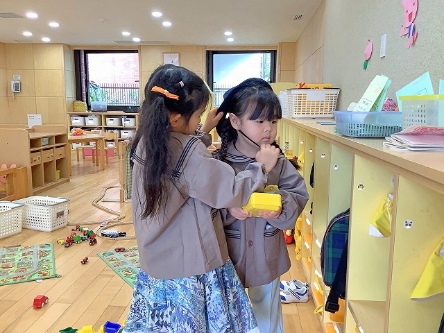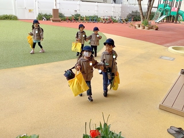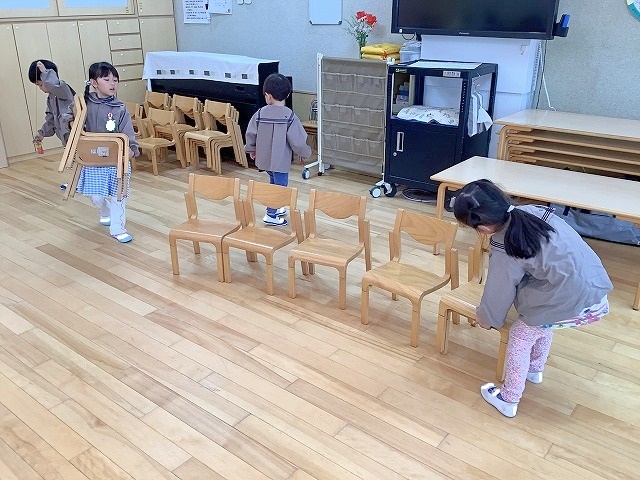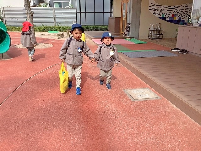 帰りの時間になると、またまたお助けマンの年長児がやって来て、椅子を並べたり、トイレに連れて行ったくれたり、帽子を被せてくれたりと、優しくお世話をしてくれました💗