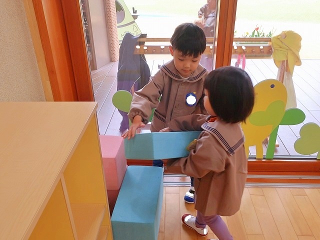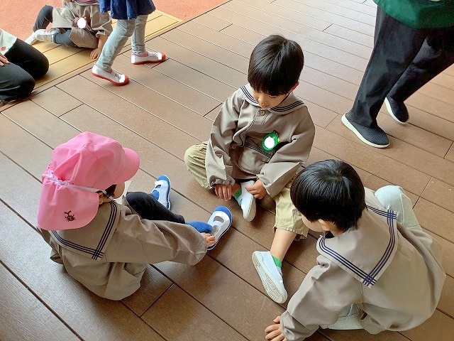 初めてのことだらけの年少児ですが、そこに駆けつけてきてくれたのがお助けマンの年長児!