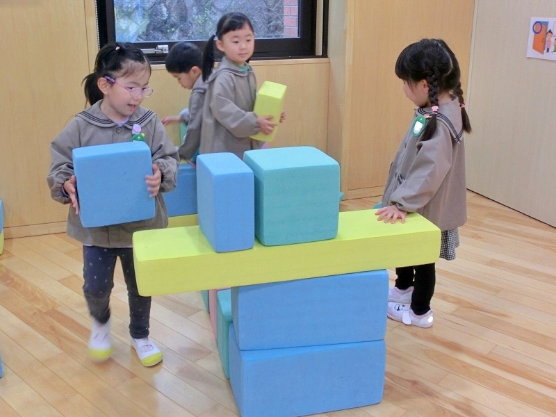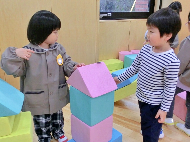 友達と一緒に、大型ソフトブロックで遊ぶ姿も見られました(#^^#)