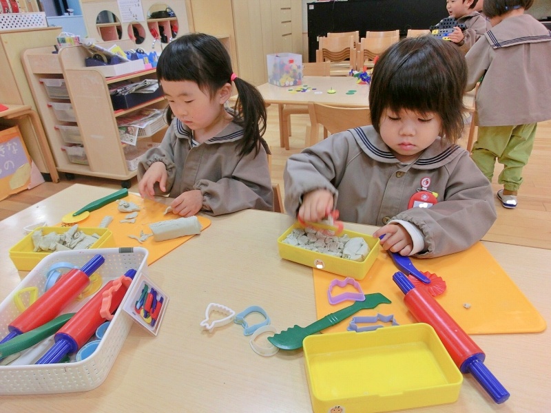先生や友達と一緒に、粘土をしたり、折り紙をしたり♪