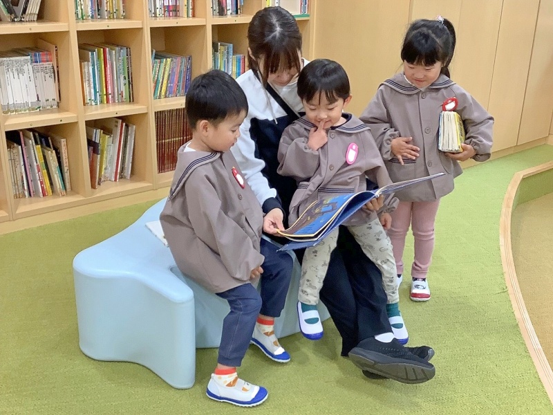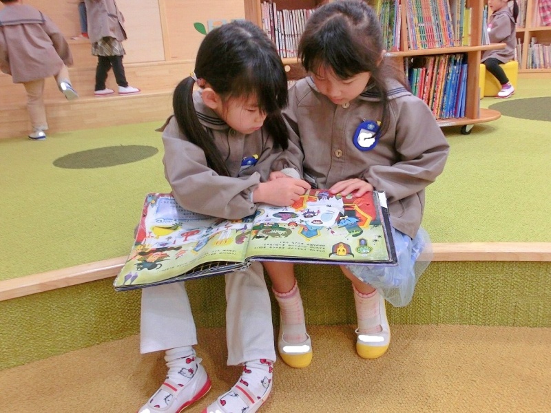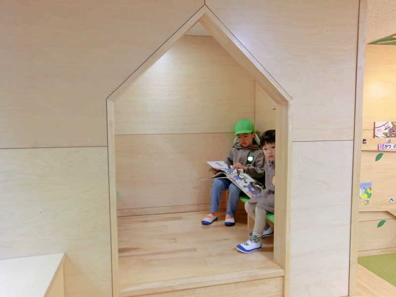 図書室の奥には、落ち着いて絵本を読むことができる隠れ家的なスペースもあります♪