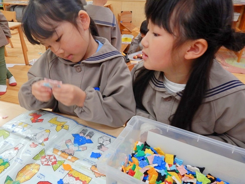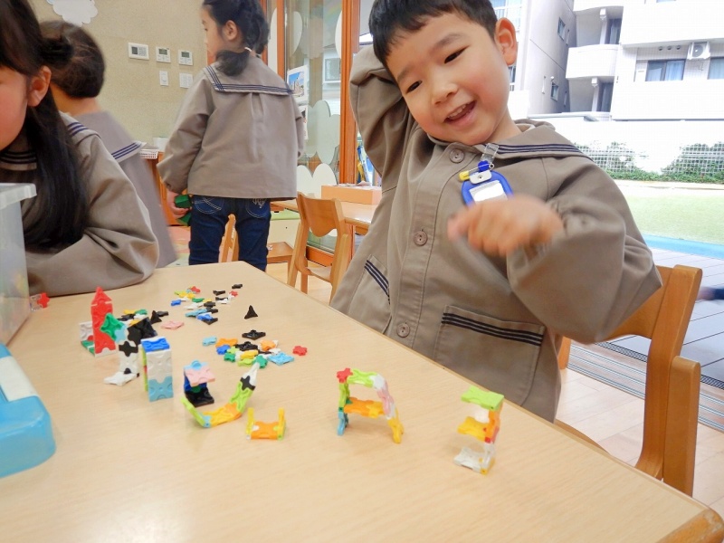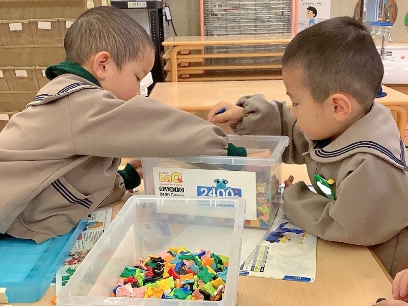 年長組では、知育ブロック「LaQ」を集中して組み立てて遊ぶ姿も見られました!