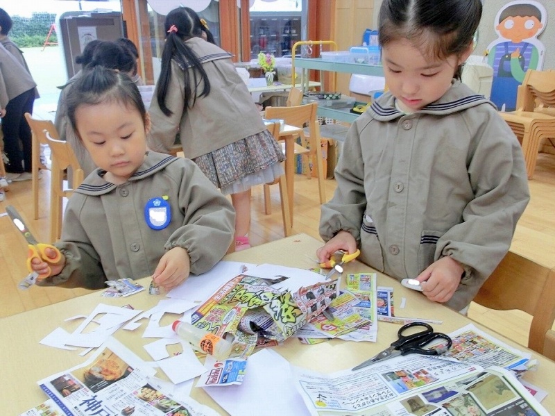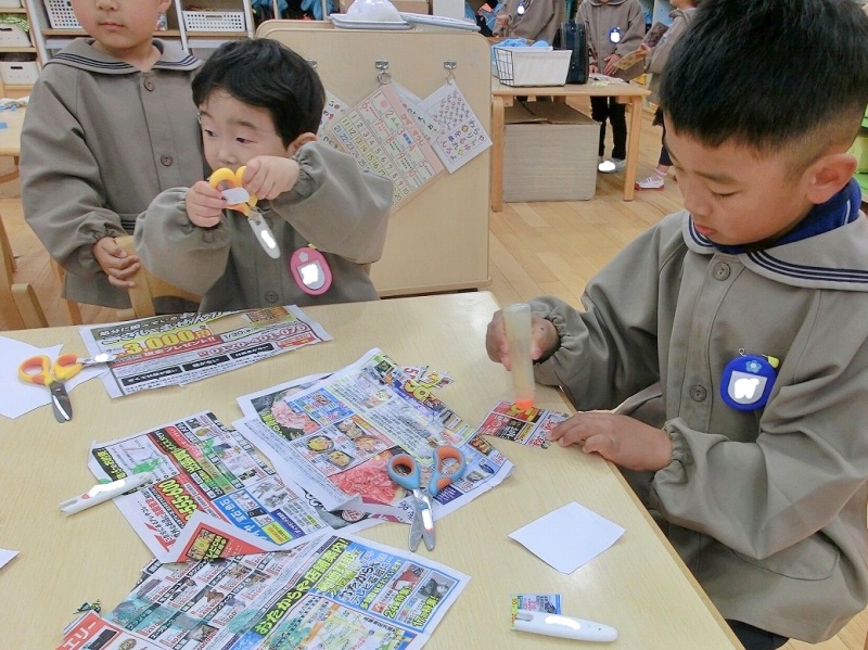広告紙も子ども達の手にかかれば遊びの材料に大変身!子ども達の遊びを創り出す力はすごい✨