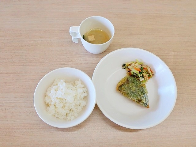 今年度の給食がスタートしました♪ 初日のメニューは、カレイの磯部天ぷら・春キャベツの…