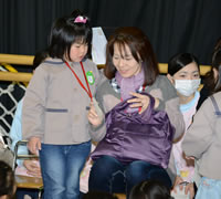 2月の誕生会を22日(水)に行いました。 年少組は、担任からマジックシアターやペープサートのお話をプレゼントしました。 年中・年長合同の誕生会では、年長かぜ組が司会をし、年中ゆり組が「ミッキーマウスマーチ」の合奏を披露しました。 先生の指揮をよく見て演奏したり、大きな声で歌ったりする姿に、見ている人は惹きこまれました。 職員は、マジックショーを披露しました。 途中で誕生児のお父様にも参加してもらい、「なんで!?」「すごーい!」と、大成功でした。
