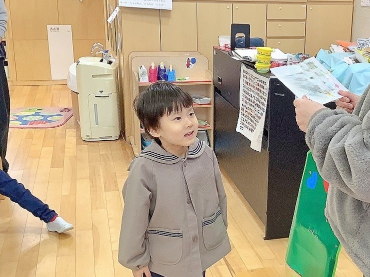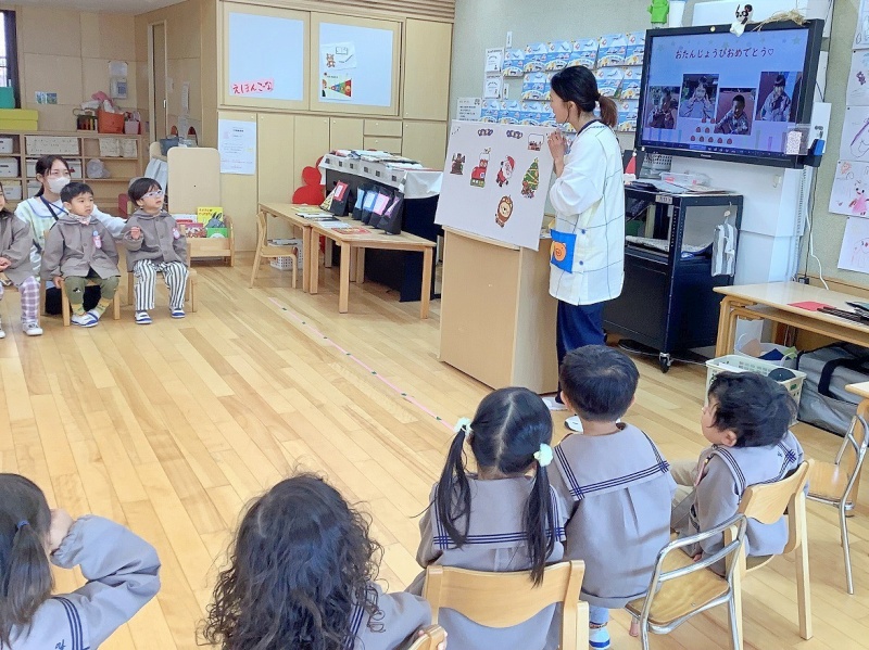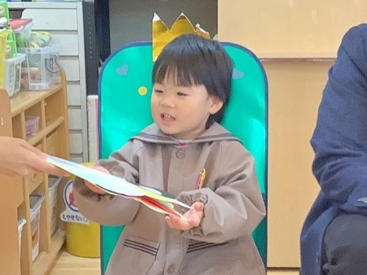 12月10日(水)に、12月生まれの子ども達の誕生会を行いました。インタビューに答えたり、おうちの方からのお祝いのメッセージを聞いたり、お祝いのメダルやプレゼントをもらったりし、とても嬉しそうな誕生児でした(*^_^*)