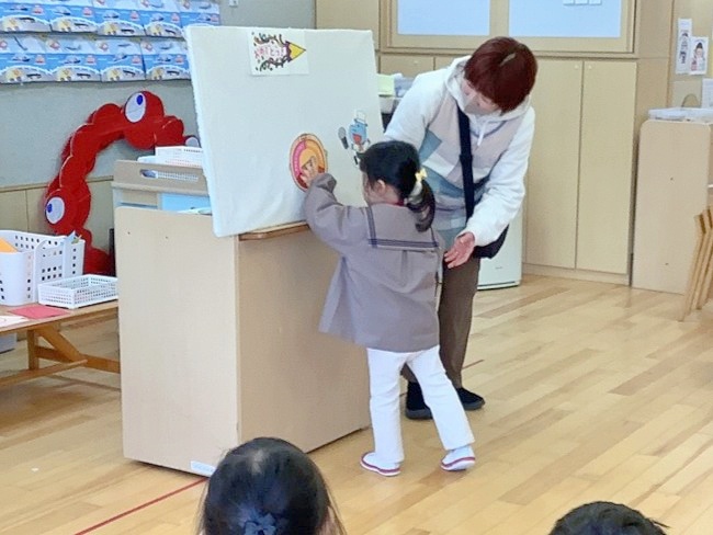 年少組では、先生によるパネルシアターのお話をクラスのみんなで楽しみました♪