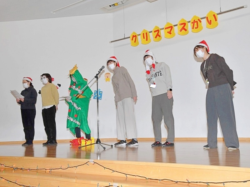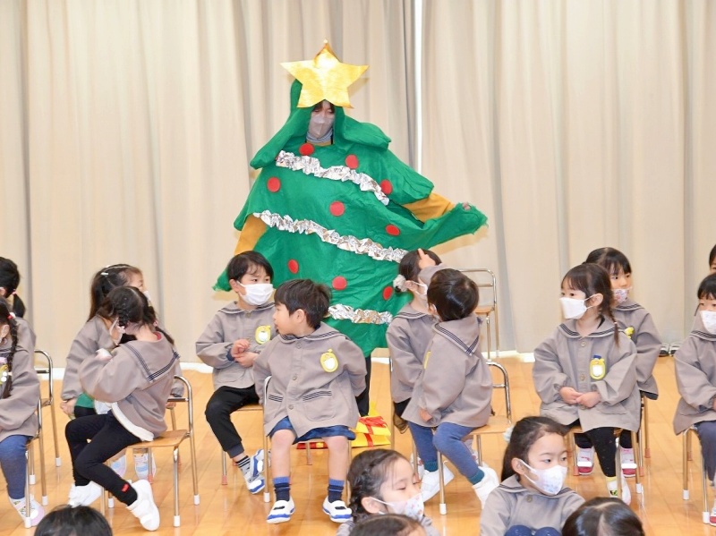 12月16日(火)にクリスマス会を行いました。12月に入ってから、クリスマス制作をしたり、ツリーの飾りつけをしたり、クリスマスソングを歌ったり、アドベントカレンダーでクリスマス会までの日数をカウントダウンしたりしながら、クリスマス会当日を楽しみにしていた子ども達。当日は、朝から職員がサンタの帽子やトナカイのツノ、ツリーのコスチュームを身に着けて子ども達を出迎え、園内はクリスマスの雰囲気でいっぱいに💗