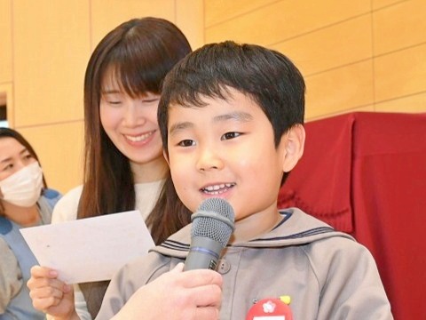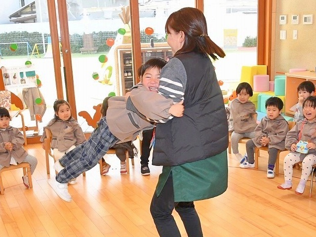 年中・年長組は、かぜ組6名が司会をし、出し物では、会場を巻き込んで「こすれこすれ」の触れ合い遊びをして盛り上げてくれました。