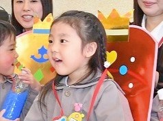 1月16日(金)に1月の誕生会を行いました。年少組は、担任の牛乳パックシアターとペーパーシアターを楽しみました。