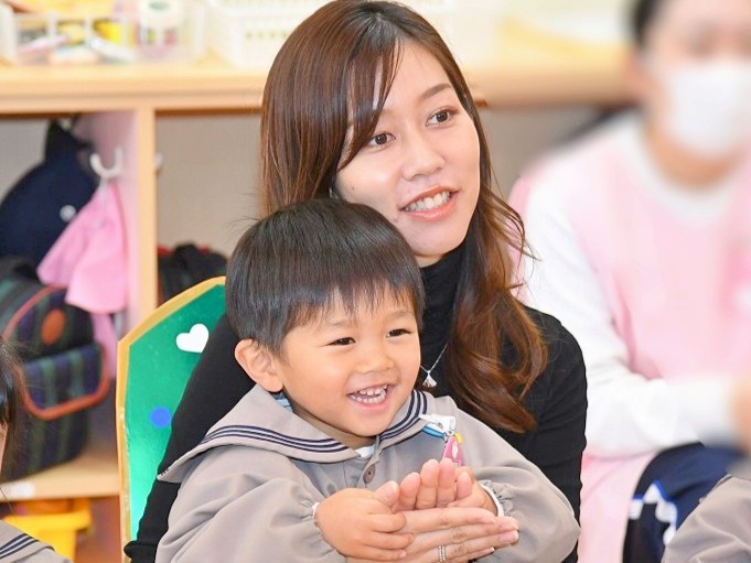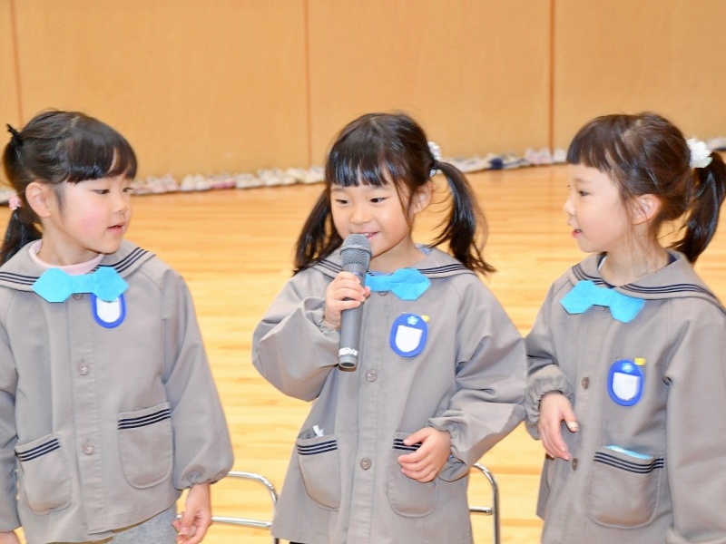 年少組では、担任や友だちからのインタビューに、少し照れながらも可愛らしく答える姿が見られました♡担任の出し物では、マジックショーやパネルシアターが披露され、みんな目を輝かせながら楽しんでいました♪