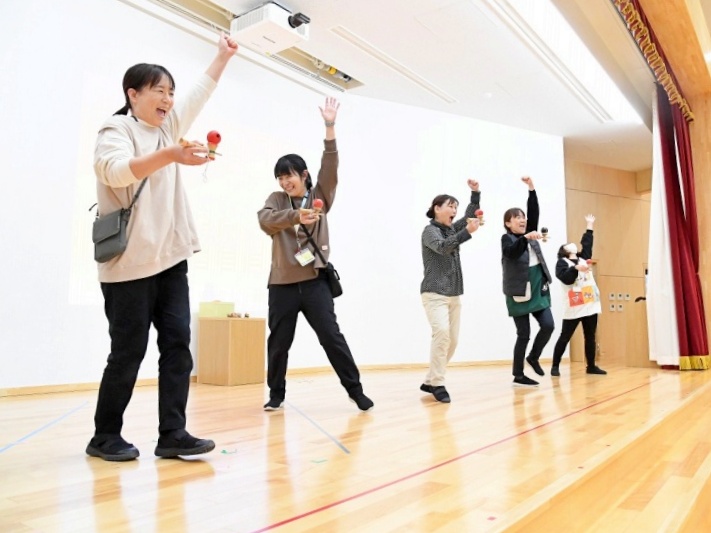 職員の出し物「Yチューブ 先生たちの 挑戦!」では、担任がさまざまなことに挑戦し、子ども達も笑顔いっぱいで応援していました♪