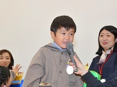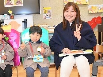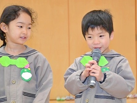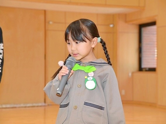 誕生会終了後には、司会の引き継ぎも行われました。年長児は、年中児のために折り紙で司会用の蝶ネクタイを作り、プレゼントしてくれました。「次は僕たち・私たちの番だ!」と、期待で胸を膨らませていた年中児の姿が印象的でした。