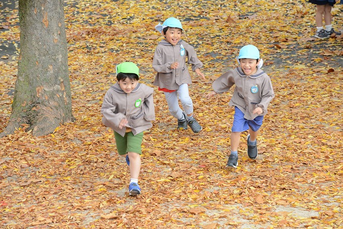 みんなでお弁当の後は、公園内を散策したり、遊具で遊んだりして楽しい時間を過ごしました。帰りはちょっと疲れた年少児の足が止まりそうになると、年長児が励ましてくれ、最後までみんなで歩いて帰りました。