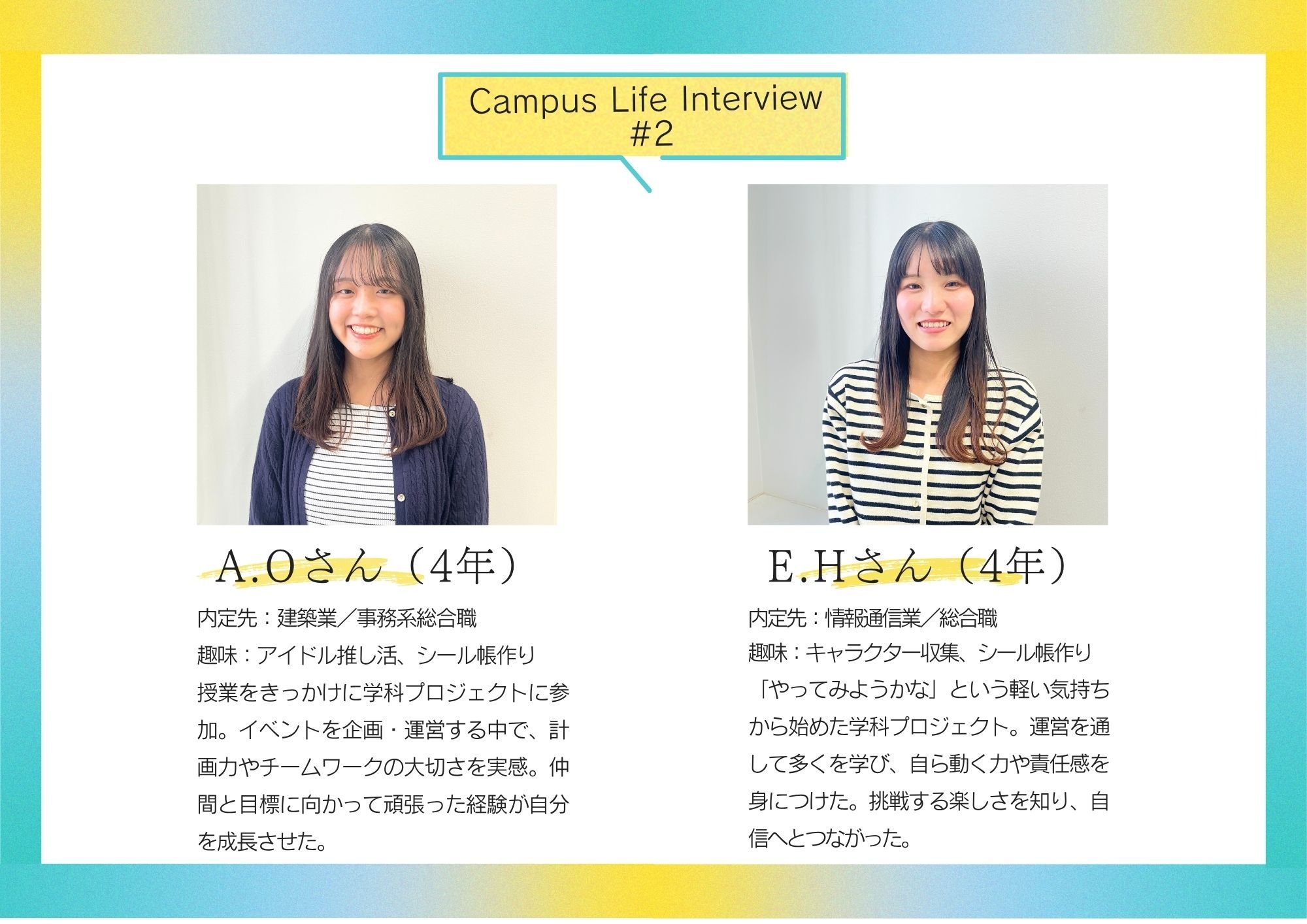 #2 県外出身の2人にインタビュー! 自分の成長を感じた学科プロジェクト
