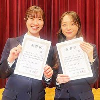 【2 人】 挑戦することで、自分の可能性を広げることができると思います。現代ビジネス学科での学びや資格取得を通じて、未来への知識や経験を積んでください。