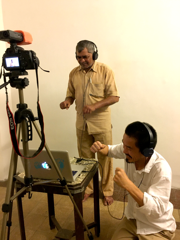 2019年に公益財団法人野村財団芸術文化助成を受けて、アート作品を制作するために3ヶ月間ほどインドのラジャースタン州とプネーという工業都市に滞在しました。滞在した地域の環境音とその土地の言語(主に擬音語)を調査し、地元住民と一緒になってサウンド作品を制作しました。写真は地元の子供達に環境音(孔雀の鳴き声やトゥクトゥクと呼ばれるオート三輪の走行音)を自身の言葉で模倣してもらっているところです。
